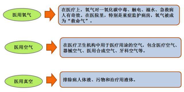 醫(yī)用氣體是指醫(yī)療方面使用的氣體,有的直接用于治療,有的用于麻醉,有的用來驅(qū)動(dòng)醫(yī)療設(shè)備和工具,有的用于醫(yī)學(xué)試驗(yàn)和細(xì)菌、胚胎培養(yǎng)等。